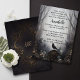 This dark and moody enchanted forest design features a whimsical bird and floral and fauna to reflect a romantic feel.