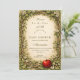 This charming baby shower design features an illustrated woodland storybook frame with twisting branches, delicate blossoms, soft greenery, and a whimsical red apple accent set against a warm parchment background. The vintage-inspired artwork and gentle earthy tones create a cozy, magical aesthetic that feels timeless and inviting, perfect for a storybook-themed celebration with a natural, fairytale-like charm.