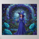 Step foot into a mystical, enchanted garden with this whimsical indigo witch and her vibrant blue jay companion. This textured, layered oil and acrylic painterly masterpiece features lush floral archways and glowing celestial light.