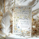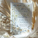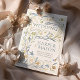 Invite your guests to celebrate your special day with this enchanting wedding invitation, deeply inspired by the flowing organic forms of the Art Nouveau movement. The design features an intricate border of stylised botanicals and delicate wildlife. Graceful, curving leaves in shades of dusty blue, sage green, and muted gold intertwine with charming, stylised four-petaled flowers in antique gold, ochre, and some with subtle blue centres, evoking buttercups and clover blossoms. Larger, more complex floral motifs in gold and brownish-gold add depth to the design. Adding a touch of whimsy, a delicate peach-orange butterfly and a light blue butterfly flit amongst the foliage, while a small, serene blue bird is perched within the leafy vines. The "Wedding" title is beautifully integrated into the upper part of the design, and the overall artwork has a subtle texture, reminiscent of vintage prints. This invitation is perfect for couples seeking a unique, artistic, and timeless aesthetic with a strong connection to nature's beauty. The reverse side offers a dedicated space for "The Finer Details," framed by the same elegant Art Nouveau border.