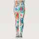 Enchanting Blue and Orange Floral Design: Delicate Leggings