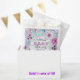 Celebrate the arrival of a new bundle of joy with this exquisite baby shower favour bag, perfect for sharing your happiness with friends and family. The bag features a delicate hand-drawn floral pattern with a soft pastel palette, creating a sense of elegance and serenity. The intricate design showcases a variety of blooms and foliage, interwoven in a harmonious display of purple, pink, blue, and green hues.