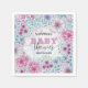 Celebrate the arrival of a new bundle of joy with this exquisite Baby Shower napkin, designed to add a touch of elegance and charm to your special event. The napkin features a delicate and intricate hand-drawn floral pattern, with a beautiful array of stylised flowers in soft hues of pink, purple, and blue, complemented by gentle green accents that suggest leaves and stems. The varied sizes and types of blooms create a lush tapestry that is both whimsical and elegant, while subtle paisley shapes and small dots are interspersed among the flowers to add texture and depth to the design.