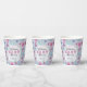 The graphic style is ornate and detailed, with a focus on gentle, soothing colours that complement the joyous occasion. The central customisable text, set in a mix of elegant cursive and print fonts, allows you to personalise the cups with the name of the honoree and the date of the shower, making each cup a memorable keepsake for guests.