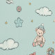 Enchanting children's room design. It features charming illustrations of children greeting each other, vibrant balloons floating high among the clouds. Background blue green