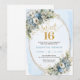 Enchanting Dusty Blue Floral Sweet Sixteen Invites