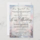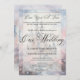 Turn your wedding into a fairy tale with our enchanting castle-themed invitation. This captivating design showcases a vintage-style illustration of a beautiful blue and white castle, complete with towering spires, nestled against a dreamy sky in soft shades of blue, pink, and purple. The lush gardens and sparkling moat further enhance the magical setting.