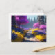 Vibrant purple foliage blankets the trees and undergrowth, creating a magical canopy overhead. Sunlight filters through the leaves, painting the path with a warm, golden glow. Lush yellow flowers bloom along the path's edges, adding a touch of whimsy to the scene. The vibrant colours and dreamlike atmosphere evoke a sense of tranquillity and adventure, inviting you to follow the path into the heart of nature's embrace.
