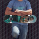 Introducing our latest skateboard, featuring stunning artwork that captures the enchanting beauty of a mermaid perched gracefully on a rock in the glistening ocean. Her flowing hair, adorned with a delicate flower by her ear, adds a touch of whimsy and elegance. The mermaid's glittering green scales shimmer with every ray of sunlight, creating a dazzling effect as you ride. With the sun shining overhead, this board embodies the magic and wonder of the sea, offering both style and inspiration for your next adventure. Ride with confidence and turn heads wherever you go with this unique, eye-catching skateboard design!