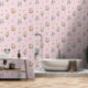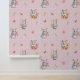 This wallpaper is absolutely enchanting and will look so sweet in your baby girls nursery.  A diagonal striped pattern of three charming mice holding flowers is set against a pink gingham check background. Additional tiny flowers and botanicals are scattered about.