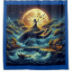 Immerse yourself in the magical allure of this captivating image, where a mesmerising melody unfolds beneath a radiant moonlit sky. A graceful figure, adorned with flowing notes, stands atop a colossal hand, overlooking a breathtaking landscape of cascading waterfalls, rustic villages, and a tranquil river.