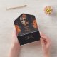 Embrace the allure of an enchanting orange bouquet on a cream skull invitation, fully personalizable to reflect your unique love story. Create a wedding that's both beautiful and tailored to your dreams. Your love, your way.