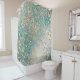 Enchanting Shimmery Gold Stars on Teal Glittery Shower Curtain