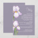 Enclosure Card Details for Weddings features a refined, minimalist style. Delicate irises in soft lilac shades are depicted against a pastel background, creating an atmosphere of sophistication and tranquility. The design is modern, airy, and perfect for a stylish, romantic wedding.
