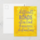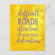 A beautiful support message on a fabulous postcard. The purple quote states "Difficult Roads often lead to beautiful destinations" on a beautiful yellow background. Works well with a cancer support get well sunshine box - or just as a thinking of you greeting.