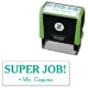This fun rubber stamp design features the motivating message "SUPER JOB!" and a personalised tutor name. It could be used by a teacher, educator, or tutor when marking assignments, to indicate that the student has done well.