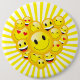 Yellow rays of summer sunshine with a heart stuffed full of happy smiling emoticon faces.