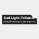 Stars twinkle against the black night sky on this product. Printed in bold white letters across the top are the words: End Light Pollution and in a lighter font are the words: enjoy the beauty of the night sky. This last phrase is printed across the bottom of the product.