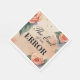 Embrace the beauty of new beginnings with our "End of an Error" divorce party napkins adorned with a delicate floral watercolor design in a peachy pink and forest green colour scheme. Surrounding the border of the napkin, vibrant blooms frame bold typography proclaiming the end of a challenging era with a touch of humour and relief. Whether it's celebrating the liberation of a friend or bidding farewell to past frustrations, these napkins infuse any divorce party with laughter and camaraderie. Crafted with high-quality materials and artistic flair, they elevate your party decor while wiping away any lingering woes with style.