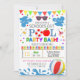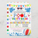 The invite features ADORABLE water & pool graphics & bright coloured design!