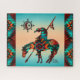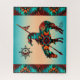 Enjoy this Unique "One of a Kind" End Of The Trail Puzzle! It Features a Native American End Of The Trail Indian and Horse and Sun on a Turquoise and Orange Sunset Background...Surrounded by a Border in Turquoise, Orange & Black!