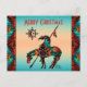 Personalise this "One of a Kind" End Of The Trail Christmas Postcard! It Features a Native American End Of The Trail Indian and Horse on a Turquoise and Orange Sunset Background...Surrounded by a Turquoise, Orange and Black Border!