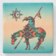This is a Unique "One of a Kind" End Of The Trail Stone Coaster! It Features Native American End Of The Trail Indian and Horse Under the Sun on a Turquoise and Orange Sunset Background!