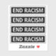 Stickers featuring white text "end racism" on a black background. Set of four stickers