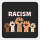Social justice themed design features redlined RACISM text with multi shade raised fists of protest.