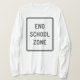 Elevate your everyday style with this women’s long-sleeve T-shirt featuring a crisp End School Zone traffic sign graphic. This minimalist black and white design offers a clean streetwear look that is perfect for layering during cooler weather. Whether you are a teacher heading to campus or a student enjoying the weekend, this comfortable shirt provides a modern aesthetic and a flattering fit. It is an ideal choice for those who appreciate industrial inspired fashion and simple high-contrast typography.