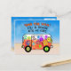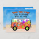 Design features Man giving the peace sign from his retro van. The van's all decked out with "hippy" sayings such as "Stop the war," "Ban the bomb," "save the earth," and "Give peace a chance!" Still as needed today as in 1960.