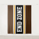 This sporty, athletic design features bold END ZONE text inside a highlighted wide black stripe with double white and yellow racing stripes against dark brown outer stripes. The text in this design can be personalised.