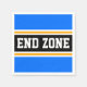 This sporty, football design features bold END ZONE text inside a highlighted wide centre black stripe with white and yellow pinstripes against bright blue outer stripes. The text can be personalised.