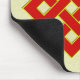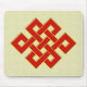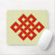 This mousepad features a red Endless Knot, one of the Eight Auspicious Symbols of Buddhism, on a yellow background.