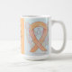 Endometrial Cancer uses a peach awareness ribbon to show support for its awareness. This custom mug features peach awareness ribbon guardian angel art paintings with the message "I Hope and Support Endometrial Cancer Awareness!" The custom peach awareness guardian angel ribbon art picture coffee cups or mugs can be customised with personalised messages to make great cause mugs for awareness fundraisers, awareness cup gifts, or other special events or cause support occasions. Make your own customised words for a personal message of hope and support to share!