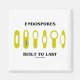 An endospore is a dormant, tough, and temporarily non-reproductive structure produced by certain bacteria from the Firmicute phylum. Endospores enable the survival of a bacterium through periods of environmental stress which may last millions of years. Showcase your wry bacterial sense of humour with any of these gifts featuring different types of endospores, along with the saying "Endospores Built To Last"! Memorable gifts for microbiologists!