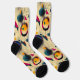 Add a burst of energy to your style with these abstract socks, featuring vibrant yellow, pink, and navy accents. The design showcases bold circular patterns, geometric shapes, and dynamic brushstrokes on a cream background. Perfect for creative individuals and trendsetters, these socks bring a unique and modern artistic touch to any outfit.