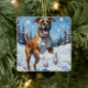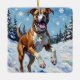 Energetic Boxer Dog Leaping in Winter Snow Fun Ceramic Ornament