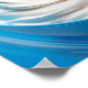 Energetic Food Bowl: Yogurt and Fruit Muesli on a Blue Background. A bowl of yogurt topped with fruit muesli sits against a vibrant blue background, capturing a sense of dynamism and energy.