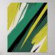 A digital abstract artwork featuring bold diagonal streaks in shades of green, yellow, black, and off-white. The composition is dominated by dynamic brush-like strokes and sharp edges, with some areas fading into halftone dot patterns that add texture and depth. The contrasting colours and energetic lines create a sense of speed and movement, evoking a modern, sporty, and vibrant aesthetic.