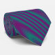 This necktie features an abstract green and purple interlocking circular pattern.