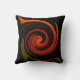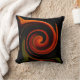 This decorative throw pillow features a circular whirlpool pattern in brilliant colours of red, orange, green, yellow, brown and black. The abstract design is an impressionistic view of the swirling energy of creation.