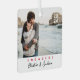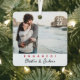 Capture the joy of your first Christmas together with this elegant holiday photo ornament. Featuring 'Merry Christmas' in modern red typography and your names in a chic handwritten script on a crisp white background, this ornament offers a clean and contemporary design that perfectly complements any holiday decor. Easily customise the photo, names, and greeting to create a personal keepsake. The example image shows a happy couple, ready to be replaced with your own cherished memory. Make this holiday season one to remember with a stylish and timeless ornament!