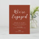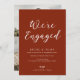 a terracotta earthtone simple lettering design and a personalised image. You can personalise the text, image and colour detail on this engagement party invite template.