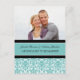 Engagement announcement Photo postcards in elegant turquoise blue, black and white classic floral damask pattern, customisable with your names, the perfect way to announce your engagement to friends and family. Available in a wide range of matching wedding products.