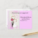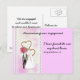 This engagement announcement has a stylised bride in a wedding gown and groom in a tuxedo with pink flower adorned, entwined gold hearts in background.and lace look trim. Pink themed. You can alter the text to personalise. On the front is a Bible verse from the Song of Solomon that says "I haa. On the back is your message and your names.