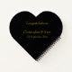 A stylish engagement party guest book, with an ice bucket with bottle, flute glasses balloons, and confetti all on a black background with gold coloured text. This fabulous heart shaped engagement celebration guest book makes a fabulous gift or party memento. Perfect for special events such as engagements, graduations, wedding anniversary, milestone birthday parties and lots more .With 60 sheets (120 pages) - there is plenty of room for party guests to leave well wishes or family to fill with memories and messages of love. Personalise with a name (s) date of event or party on the front and a message name(s) and date on the back.