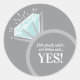 Personalised engagement she said yes with a diamond engagement ring graphic design. Personalise with your own names currently reads Eddie finally asked... and Wilma said YES!. Other matching items are available. Ring art and design by Sarah Trett for www.mylittleeden.com and www.mylittleedenweddings.com on Zazzle.