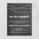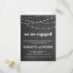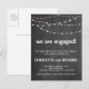 We are engaged party invitation postcard with string lights on a cool rustic chalkboard background. More options on: http://www.zazzle.co.uk/designbyredline
