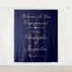 A Gorgeous Welcome Photo Backdrop for an Engagement Party - Simple, Elegant, Navy & Gold Tapestry Classic gold script lettering personalised on a simple elegant navy blue background on the Welcome Sign, Reception Banner, or use as a Photo Booth Backdrop. Click personalise this template to customise it with the future Bride and Groom Names and the engagement date quickly and easily, Engagement Party Elegant Navy Gold Photo Backdrop, is part of the Wedding Engagement Collection in this store. Beautiful for a spring, summer, fall, or winter engagement party. 30 Day Money Back Guarantee. Ships Worldwide Fast.